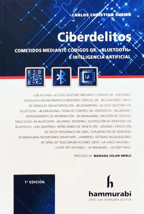 «QRLJacking» Acceso ilegítimo mediante códigos QR. «QRishing» Defraudación informática mediante códigos QR. «Bluejacking» Envío de mensajes sin autorización. «Bluesnarfing» acceso ilegítimo vía Bluetooth. «Bluebugging» Toma de control del dispositivo. «Bluebump» Apoderamiento de información. «Bluemalware» Difusión de códigos maliciosos vía Bluetooth. «BlueMAC spoofing» Sustitución de identidad vía Bluetooth. «Sim Swapping» Intercambio de tarjeta SIM. «Doxing» Exposición de datos personales en línea. Suplantación de identidad en mensajería instantánea (WhatsApp). «Jammers» Sistemas bloqueadores de señal de telecomunicaciones (SBST). «IA Voice Hacking». «Chat GPT Hacking». «IA Malware». «IA deep fake».