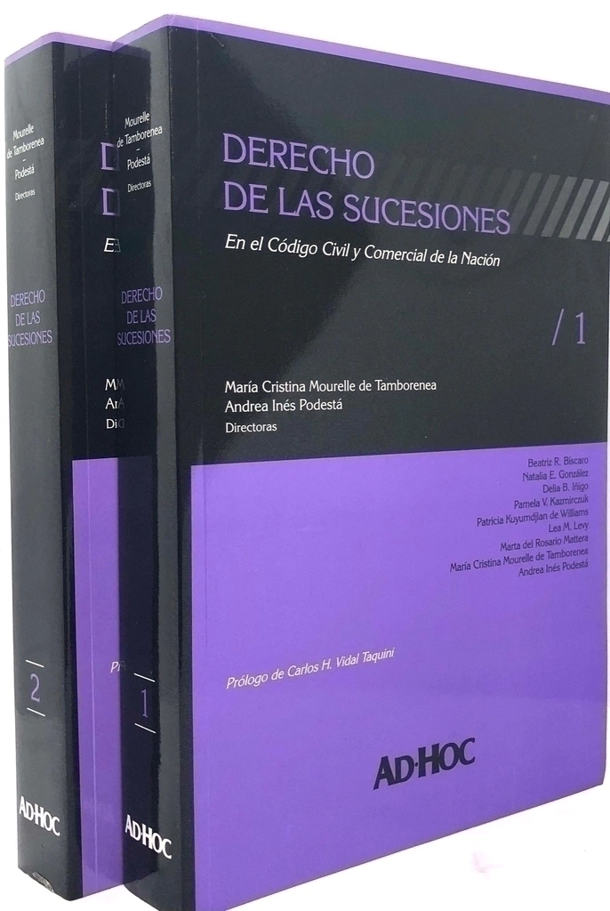Disposiciones generales de las sucesiones, por M. C. Mourelle de Tamborenea y A. I. Podestá. Capacidad para suceder, por B. R. Bíscaro y A. I. Podestá. Aceptación y renuncia de la herencia, por L. M. Levy y A. I. Podestá. Cesión de derechos hereditarios, por M. C. Mourelle de Tamborenea y A. I. Podestá. Acción de petición de herencia, por A. I. Podestá. Separación de patrimonios, por M. C. Mourelle de Tamborenea y P. V. Kazmirczuk. Estado de indivisión, por M. C. Mourelle de Tamborenea y A. I. Podestá. Proceso sucesorio. Administración judicial y pago de deudas y legados, por M. del R. Mattera. Partición, por P. Kuyumdjian de Williams y A. I. Podestá. Colación, por P. Kuyumdjian de Williams y A. I. Podestá.