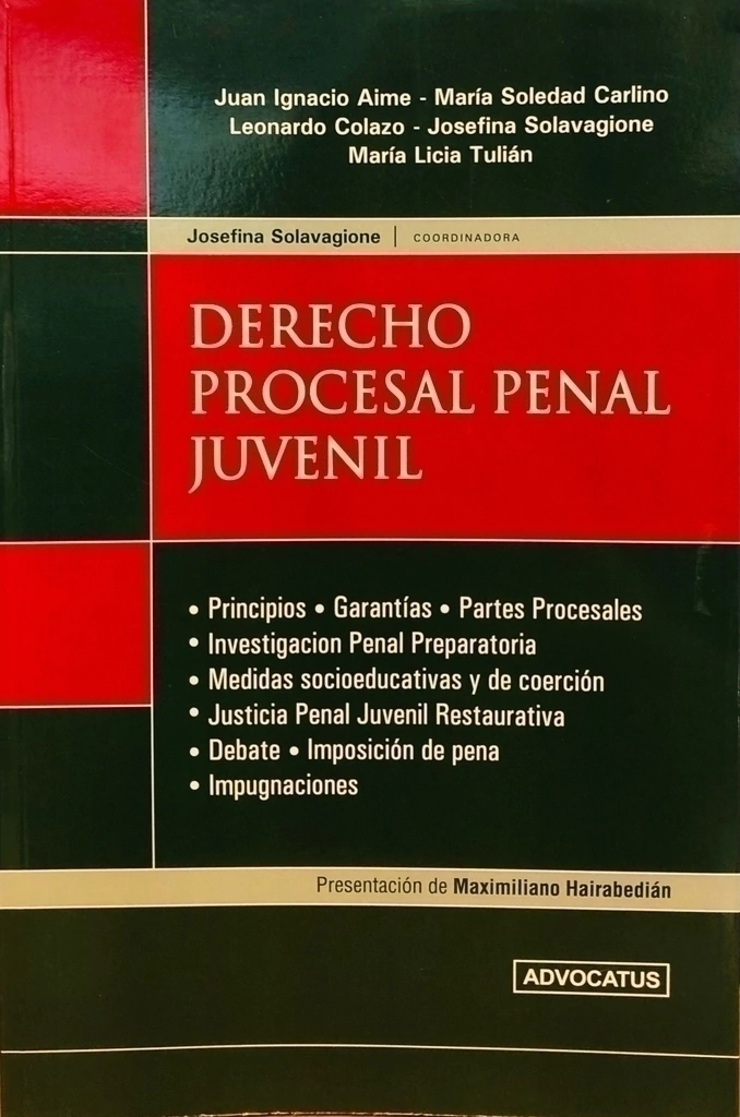 Antecedentes legislativos penales. Legislación penal juvenil: Ley 22.278. Régimen Penal de la Minoridad. Criterios para determinar la imputabilidad y punibilidad de una persona menor de edad. Procedimiento referido a menores de edad no punibles. Procedimiento referido a menores de edad imputables y eventualmente punibles. Derecho procesal penal juvenil y proceso penal juvenil. Principios del derecho penal juvenil. Garantías en el proceso penal juvenil. Órganos judiciales intervinientes en el proceso penal juvenil. Investigación penal preparatoria. Medidas socioeducativas. Naturaleza y denominación en la ley provincial 9944. Respuesta judicial frente a niños sin responsabilidad penal. Medidas de coerción procesal. Coerción personal. Cese de la privación cautelar de la libertad. Justicia restaurativa. La mediación penal juvenil. Reglas aplicables. Oralidad. Publicidad. Inmediación. Identidad física del juzgador. Contradictorio. Continuidad. Periodo de probación socio-comportamental. Prórroga. Examen sobre la necesidad de imposición de pena. Cuestiones a tener en cuenta al momento del análisis. La cuestión de la prisión perpetua en caso de menores de edad. Análisis jurisprudencial: fallo “Maldonado” (CSJN). Impugnaciones en el proceso penal juvenil.