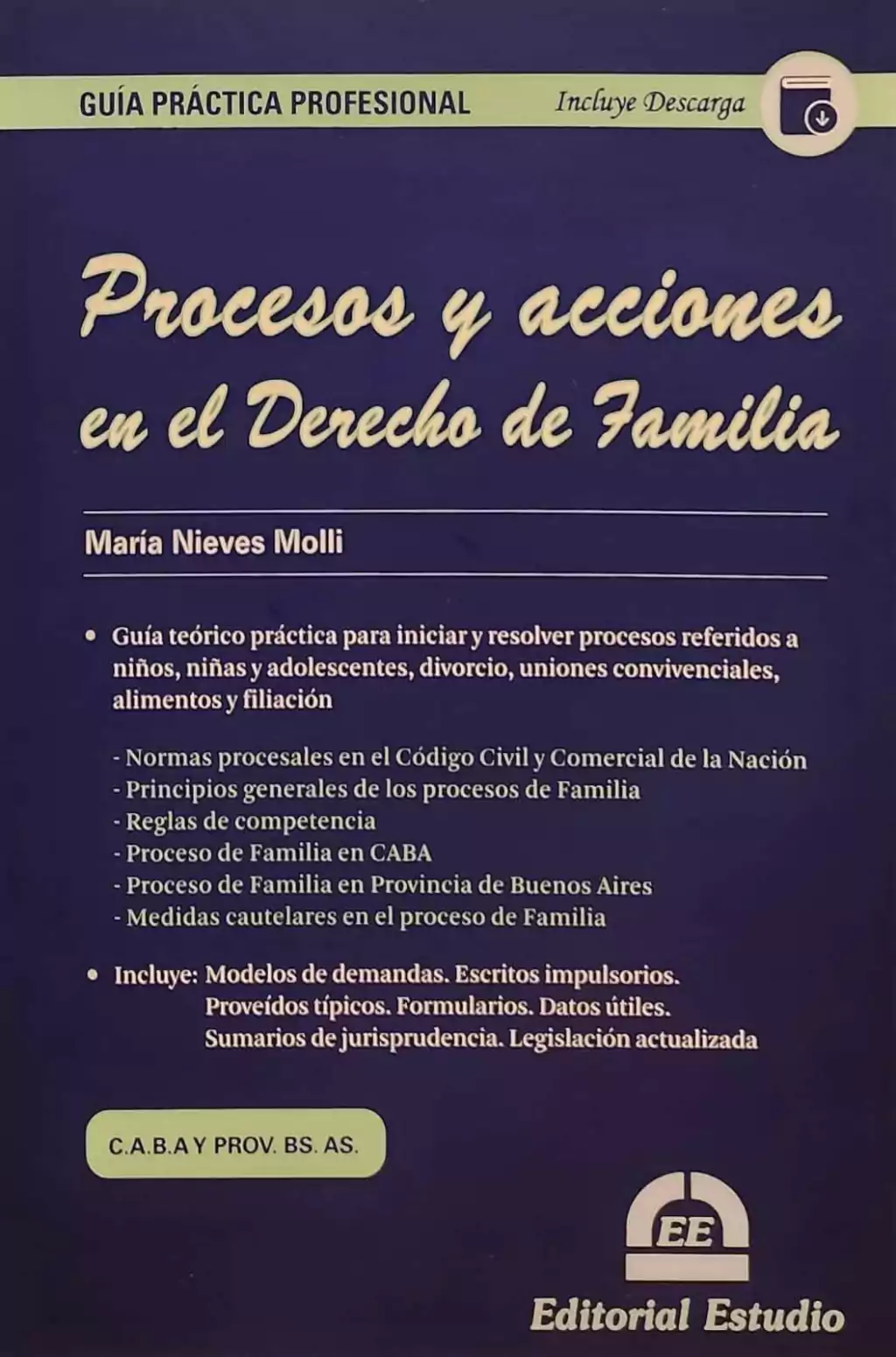 Guía teórico-práctica para iniciar y resolver procesos referidos a niños, niñas y adolescentes, divorcio, uniones convivenciales, alimentos y filiación. - Normas procesales en el Código Civil y Comercial de la Nación - Principios generales de los procesos de Familia - Reglas de competencia - Proceso de Familia en CABA - Proceso de Familia en Provincia de Buenos Aires - Medidas cautelares en el proceso de Familia Incluye: Modelos de demandas Escritos impulsorios Proveídos típicos Formularios Datos útiles Sumarios de jurisprudencia Legislación actualizada