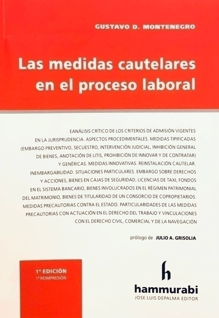 Análisis crítico de los criterios de admisión vigentes en la jurisprudencia. Aspectos procedimentales. Medidas tipificadas (embargo preventivo, secuestro, intervención judicial, inhibición general de bienes, anotación de litis, prohibición de innovar y de contratar) y genéricas. Medidas innovativas. Reinstalación cautelar. Inembargabilidad. Situaciones particulares. Embargo sobre derechos y acciones, bienes en cajas de seguridad, licencias de taxi, fondos en el sistema bancario, bienes involucrados en el régimen patrimonial del matrimonio, bienes de titularidad de un consorcio de copropietarios. Medidas precautorias contra el estado. Particularidades de las medidas precautorias con actuación en el derecho del trabajo y vinculaciones con el derecho civil, comercial y de la navegación